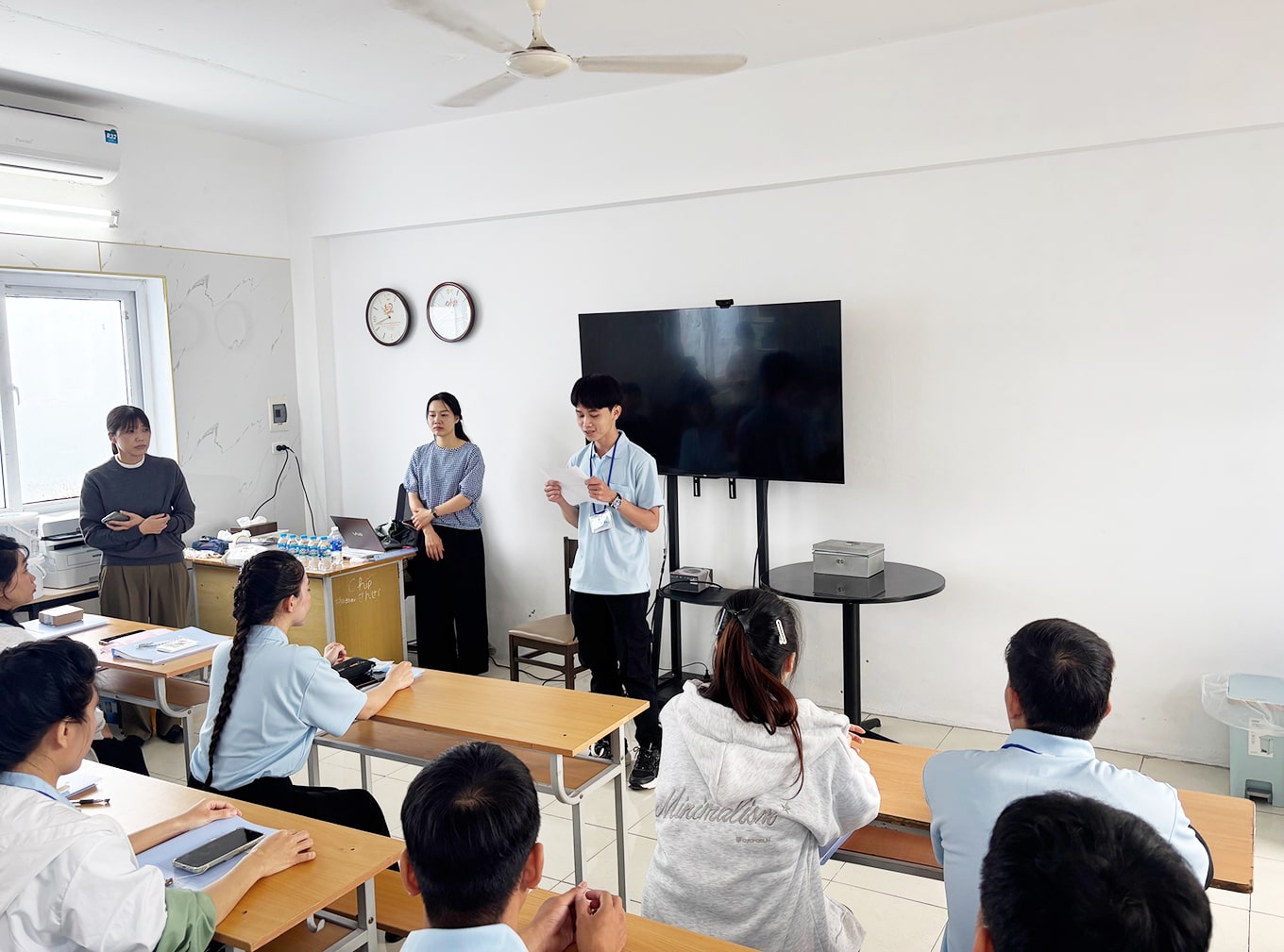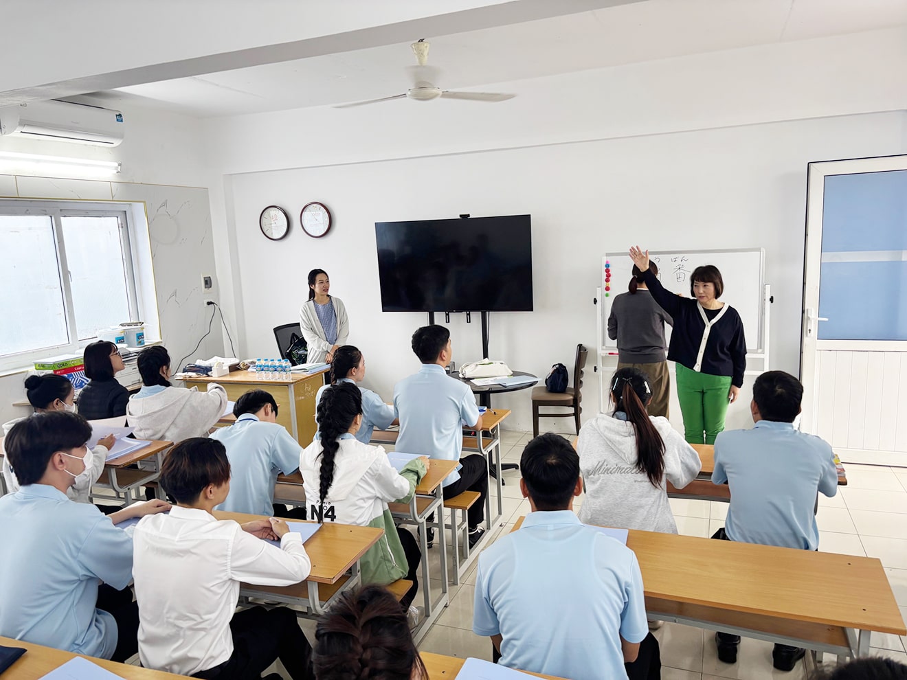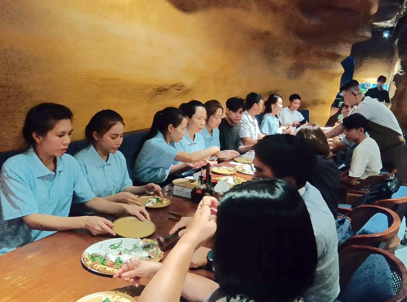生徒とVilaco社、湖山グループ職員と一緒に昼食をとり、明日からの開講に向け進めています。