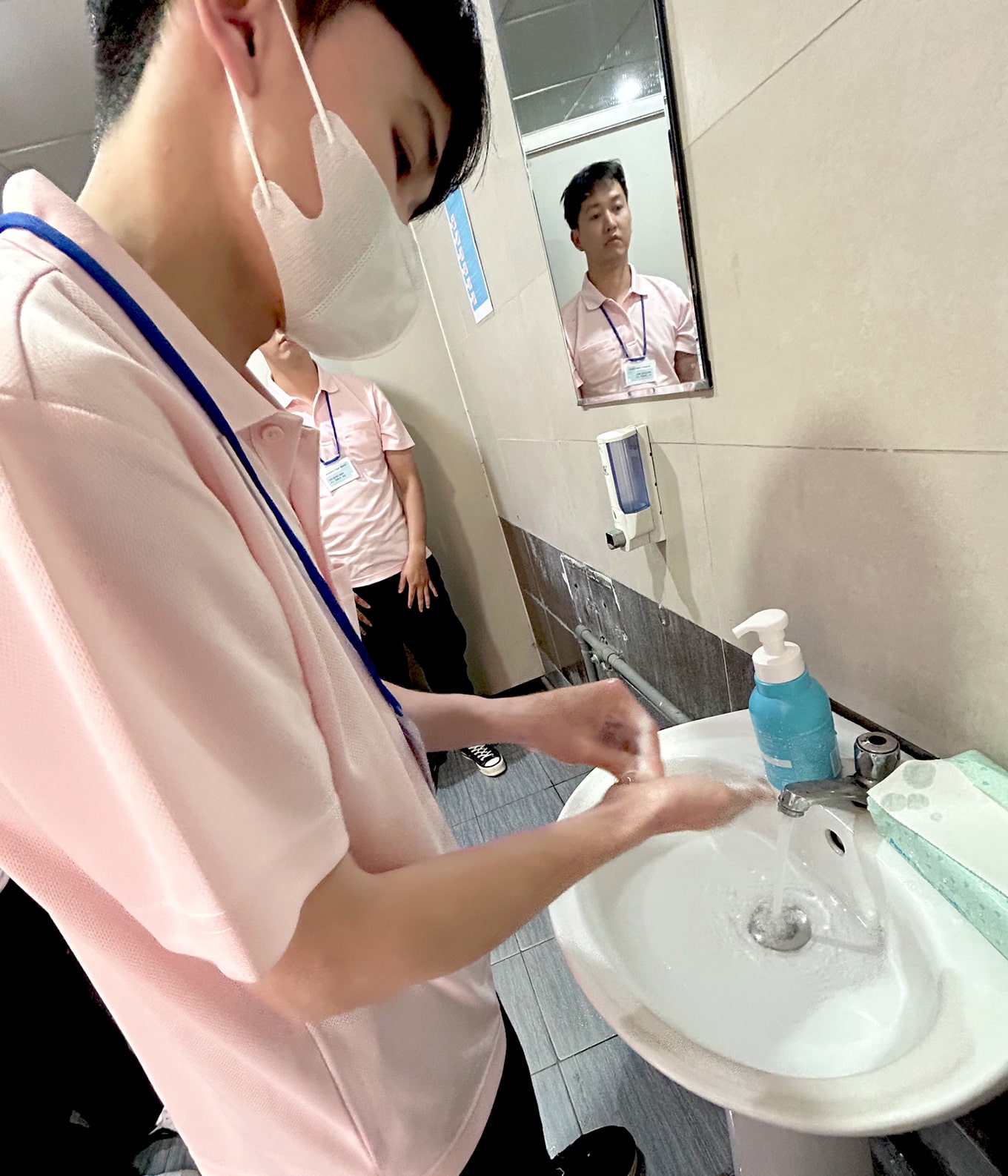 本日は環境整備、ベッドメーキング、感染対策の講義と手洗い、ガウンテクニックを行いました。