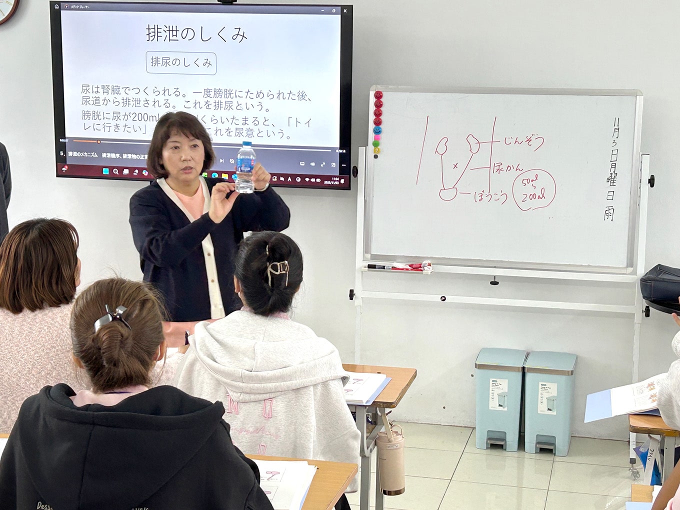 本日は排泄の仕組みの講義聴講とオムツ交換の演習を行いました。