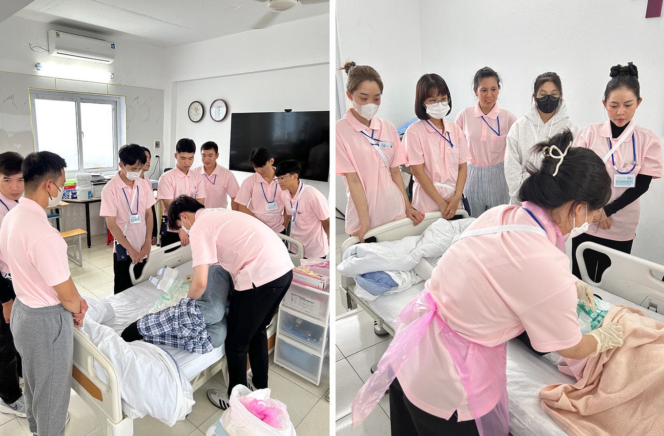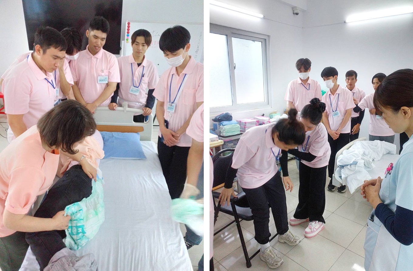 オムツ交換は声かけと手技が細かいため、1回で覚えることが困難のため繰り返し行う予定です。