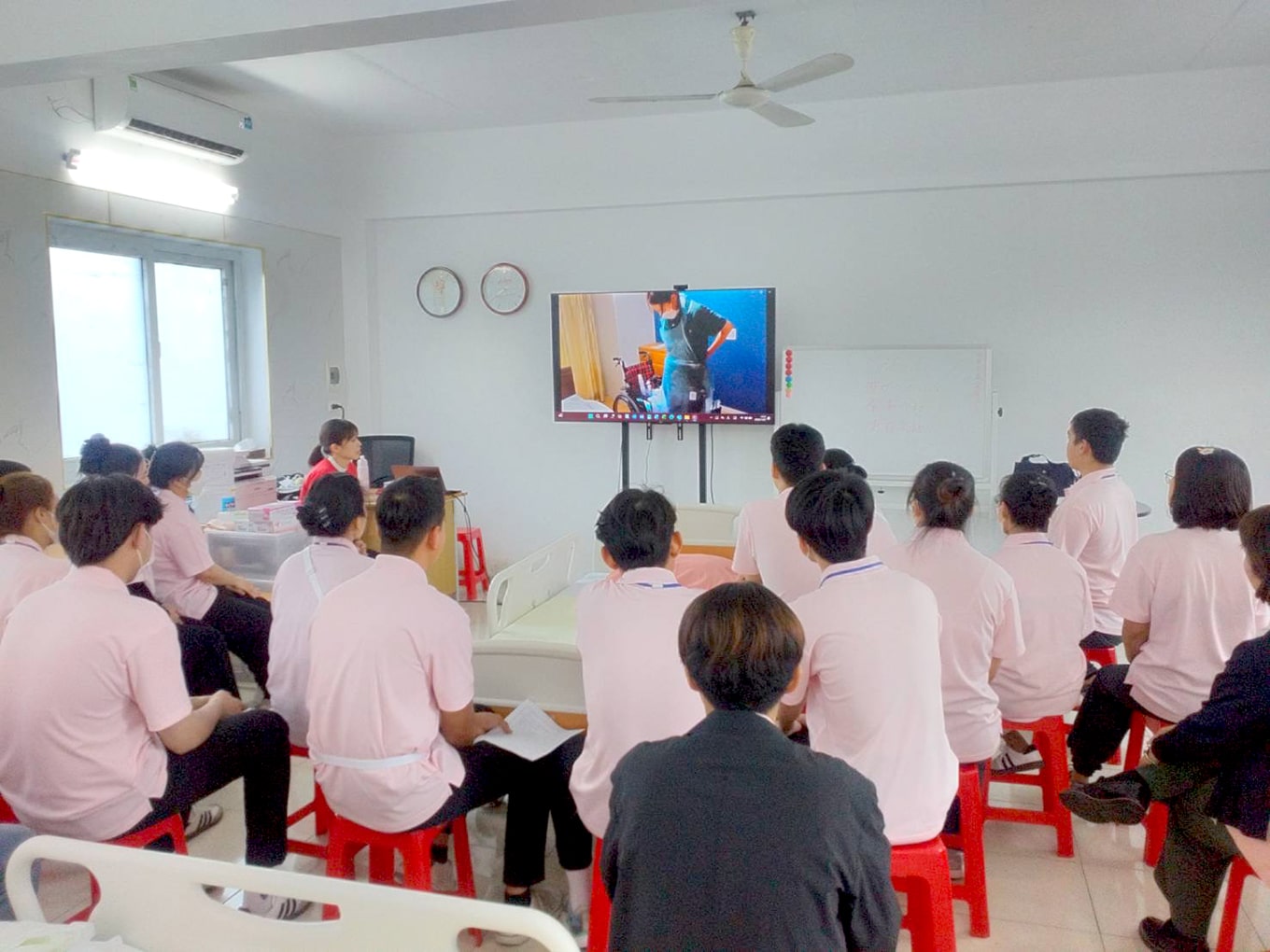 午前中は個人面談、午後からは各技術の動画の見直し、前日行った技能テストの復習です。