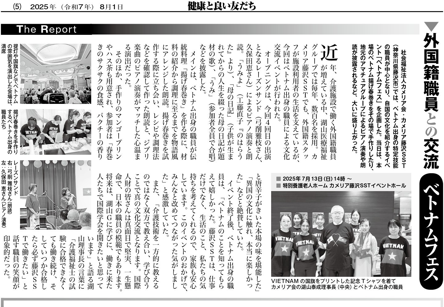 2025.08.01新聞 健康と良い友だち 掲載 社会福祉法人カメリア会・カメリア藤沢SST「ベトナムフェス」開催 外国籍職員による文化交流イベント