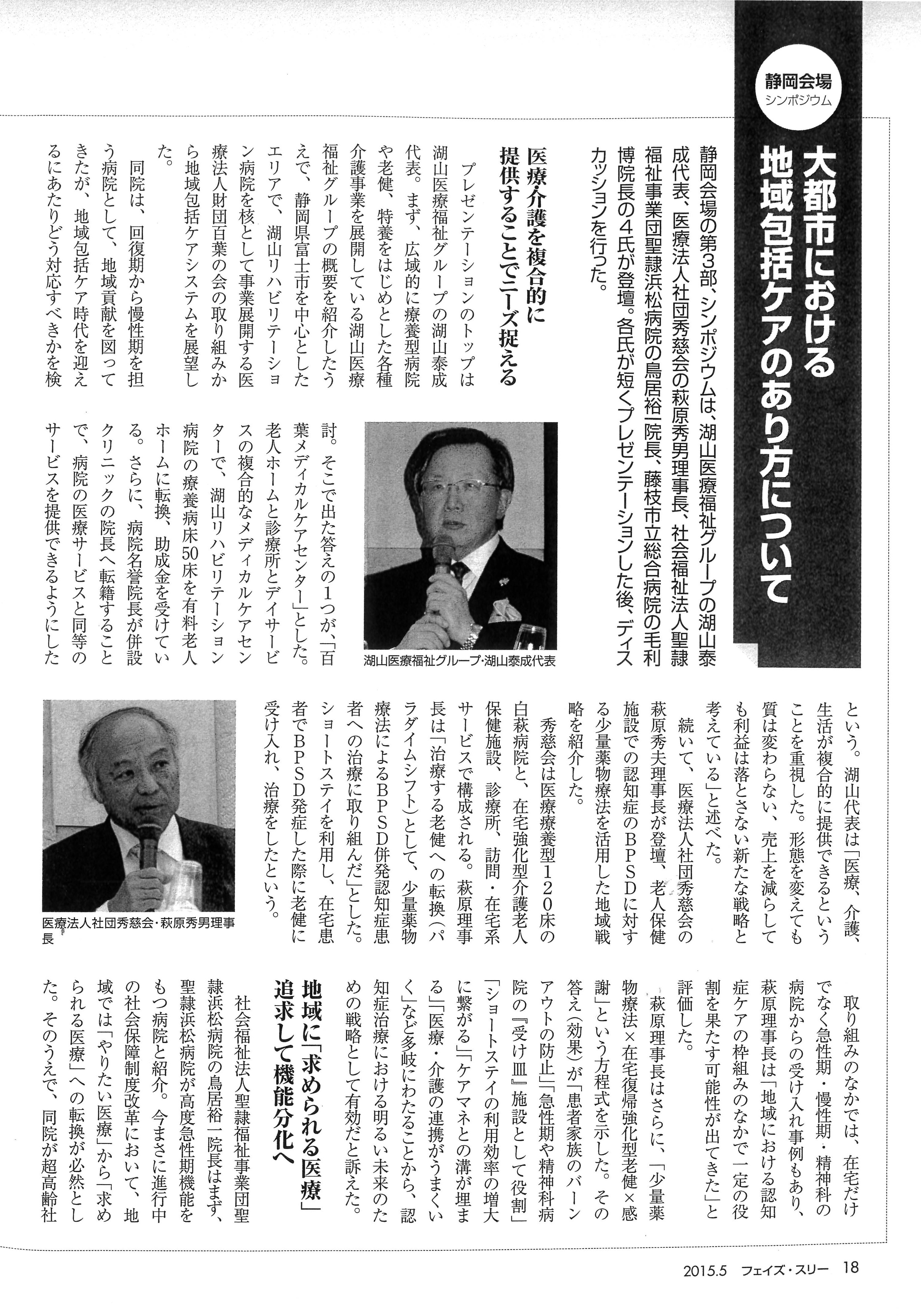 2015.05 雑誌フェイズ・スリー掲載 同誌主催 「大都市のおける地域包括ケアのあり方について」4氏がプレゼンテーション及びディスカッションを行う 静岡会場シンポジウム第3部より