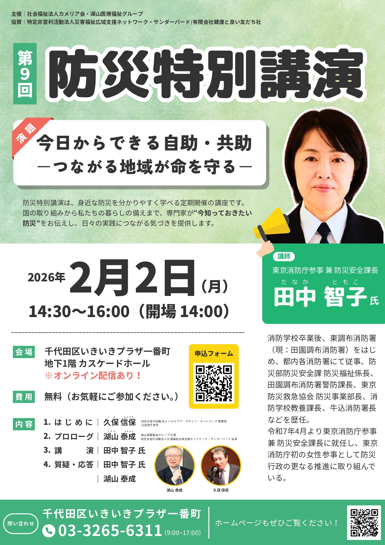 千代田区いきいきプラザ一番町カスケードホールにて行われる防災特別講演のお知らせです。