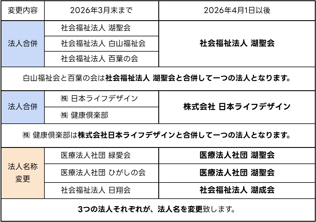 2026年4月1日より下記グループ法人の合併、名称変更を実施致します。
